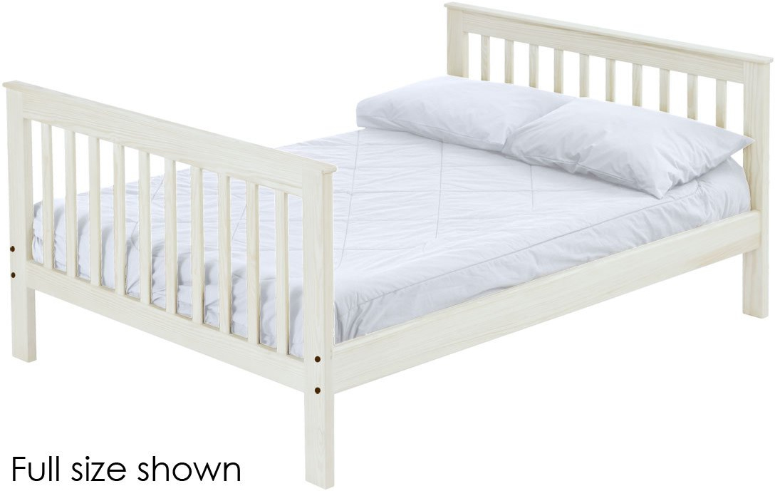 Options include extra-long for big kids and a taller version to allow 8” more headroom under the bed for comfortable seating when you add the upper bed.