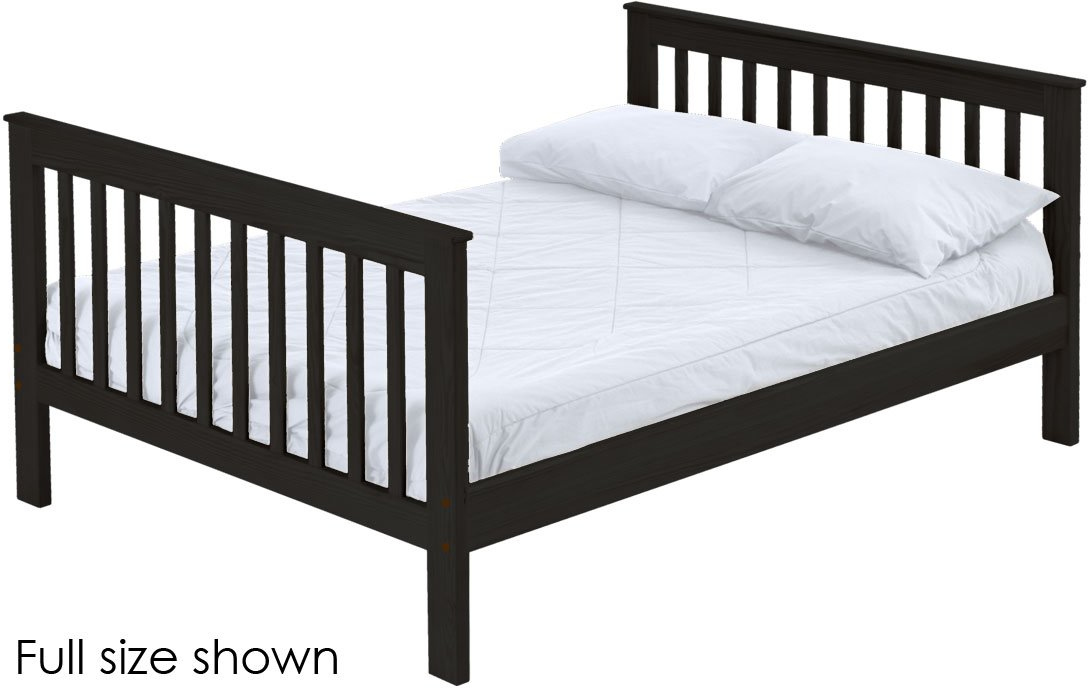 Options include extra-long for big kids and a taller version to allow 8” more headroom under the bed for comfortable seating when you add the upper bed.