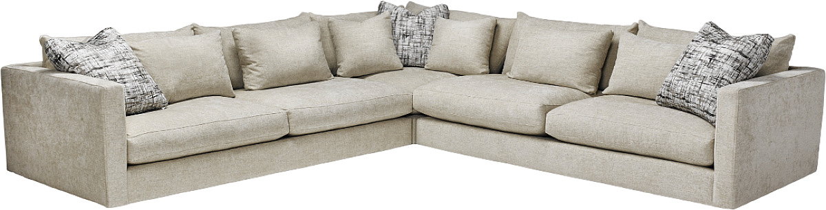Ha-ling Sectional Sofa with Feathersoft-Plus Seats, and Feathersoft back and toss. Handcrafted sectional offers you a unique piece made with care and high quality, as well as great comfort. Call or visit the store for more details.The image shown may represent the range of product, or be for illustration purposes only and may not be an exact representation of the product. Sample or exact images available upon request and if available from stock.Furniture color in images may differ in person; see instore for actual finish.All dimensions shown are approximate and are subject to the slight variations.Read More