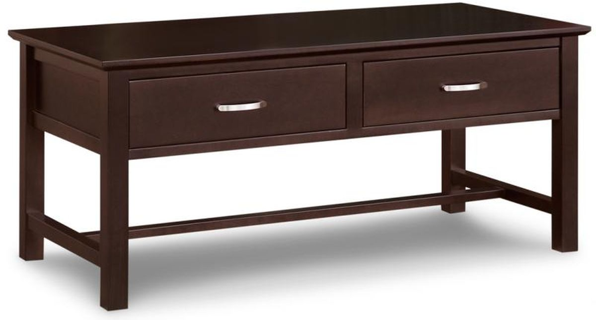 Chic and sleek, Brooklyn is ideal for those who embrace clean, contemporary style. Canadian-made from solid wood. Handstone Brooklyn 2 Drawer Coffee Table - 46Wx20Hx23D.Read More