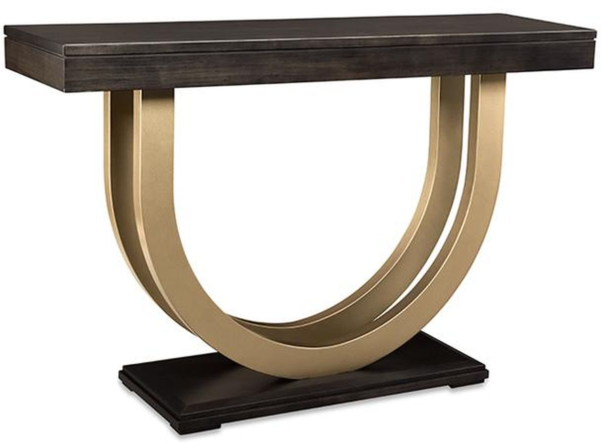 The Contempo collection strikes a steady profile with its solid foundation and no-nonsense geometric styling and crisp, straight lines. Canadian-made from solid wood. Handstone Contempo Pedestal 54” Sofa Table with Metal Curves - 54Wx34Hx16D.Read More