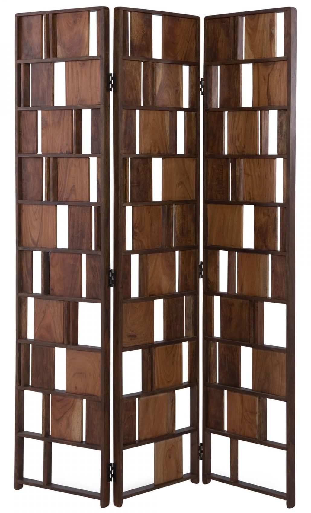 Made from solid acacia wood in a metal frame, the multi-panel screen acts as a functional space divider or simply as added style décor. Different sized cutouts and pieces make this screen truly unique from other screens.Read More