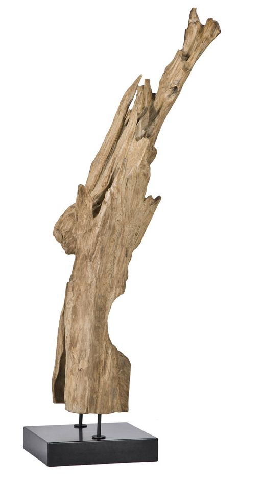 *Natural Teak Wood Sculpture On Black Marble Stand Only, Other Pieces Are Sold Separately