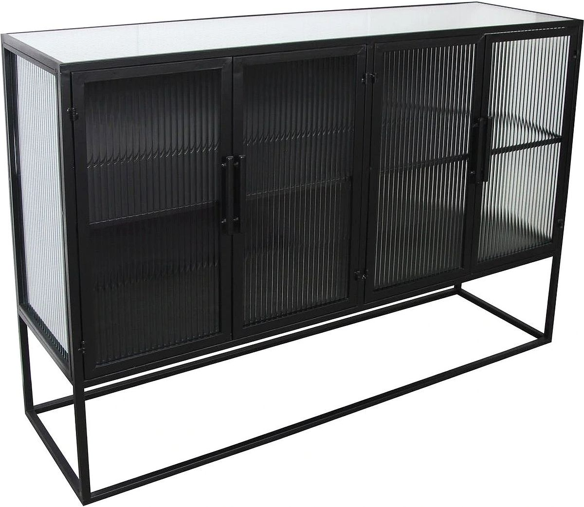 This tough, industrial luxe cabinet is a definite answer to your storage dilemmas. In a clean-cut iron frame with vertical handles, four soft-close cabinet doors, and beautifully ribbed glass front and sides, this glass-shelved unit is ideal for the living or dining room.Read More