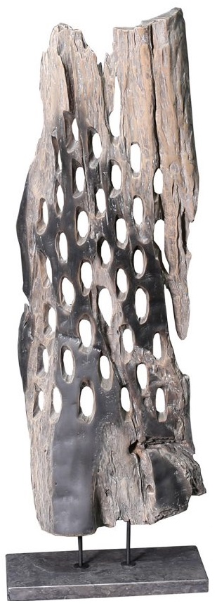 This weather-grey teak sculpture will add a natural element to a room - it's tall height will make a dramatic centerpiece on a table. Due to this item's reclaimed nature, dimensions are approximate and will vary for each unique piece.Read More