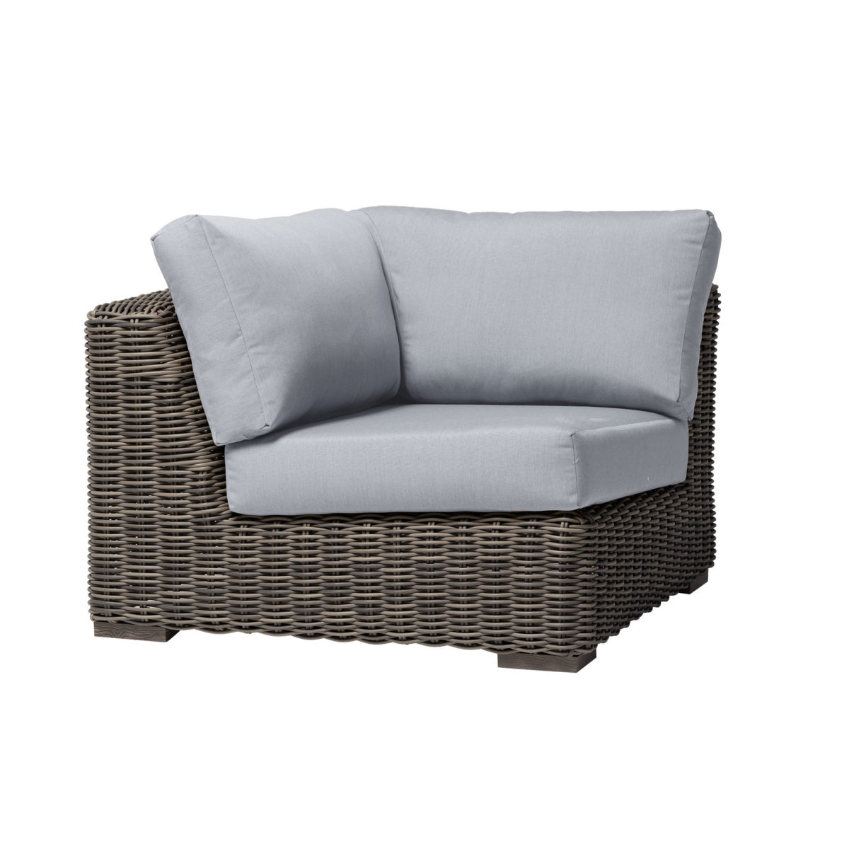 The Coconut Grove Cubo corner features wood grain finished aluminum legs. Slanted back and seat panel dropping inwards to offer great comfort.Read More