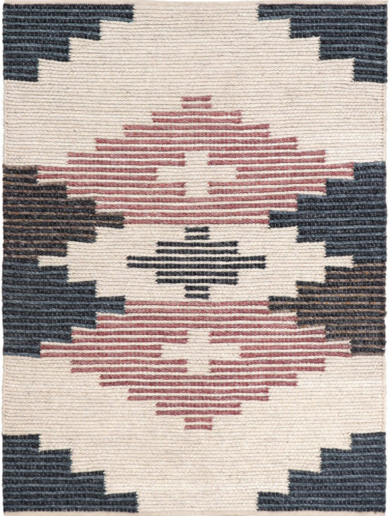 Flat woven area rug made with wool, polyester & cotton.Read More