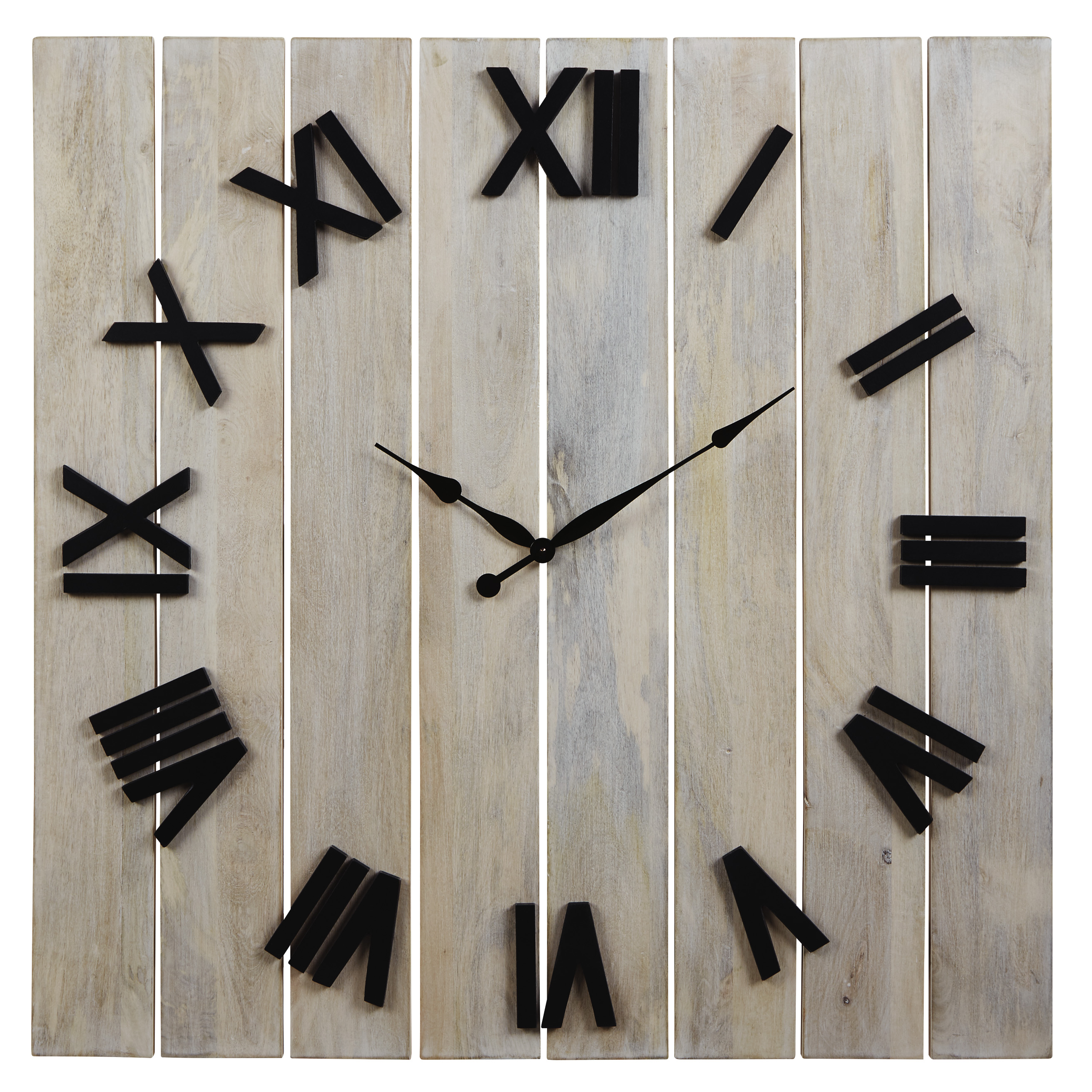 Keep your household on time with this wall clock. The whitewashed panels and black Roman numerals make a modern impression when added to any farmhouse decor.
