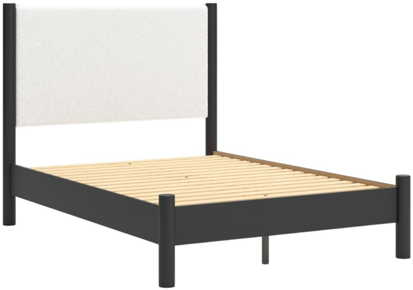 This full upholstered panel bed reflects your sophisticated approach to boho style. Crafted with both form and function in mind, its fresh white fabric beautifully contrasts the matte black finish. The versatile design suits all-neutral spaces or blends with your favorite pops of color. It’s inviting, yet posh.Read More