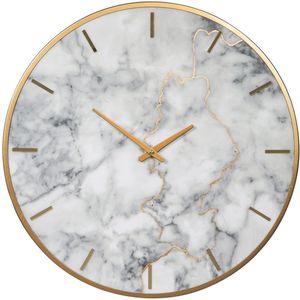 The Jazmin wall clock features a gold-tone finish around the rim and the hands. A faux marble face and a numberless time system add a dash of sleek character.